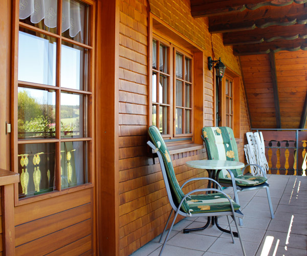 Der ca. 5 m² große Balkon mit Blick nach Nordwesten ist mit Liegestühlen, Tisch und Sitzgelegenheiten ausgestattet.
